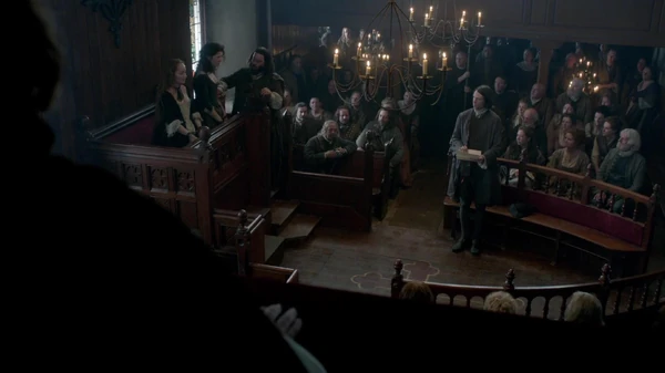 El final del juicio se celebra en la zona del lago, que se encuentra bajando el prado y cuenta también con un pequeño muelle, donde pretenden comprobar si Claire y Geillis son brujas o no. En ese lugar es donde Jamie consigue rescatar a Claire, tras el testimonio de Geillis exculpándola de todo.