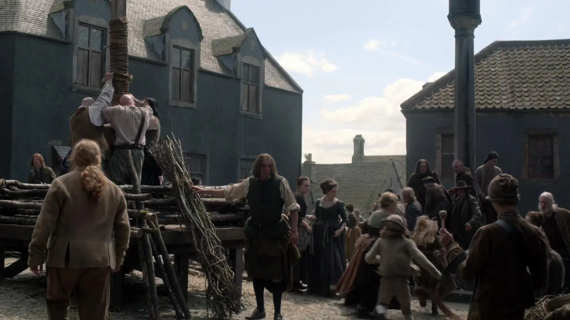 Su zona de Mercat se usó para recrear la aldea de Cranesmuir. Los edificios, de teja roja y piedra caliza blanca están bien conservados, como la Casa de Ciudad, donde se grabó el juicio por brujería de Claire y Geillis y donde las mantienen a la espera de ejecución. [3]