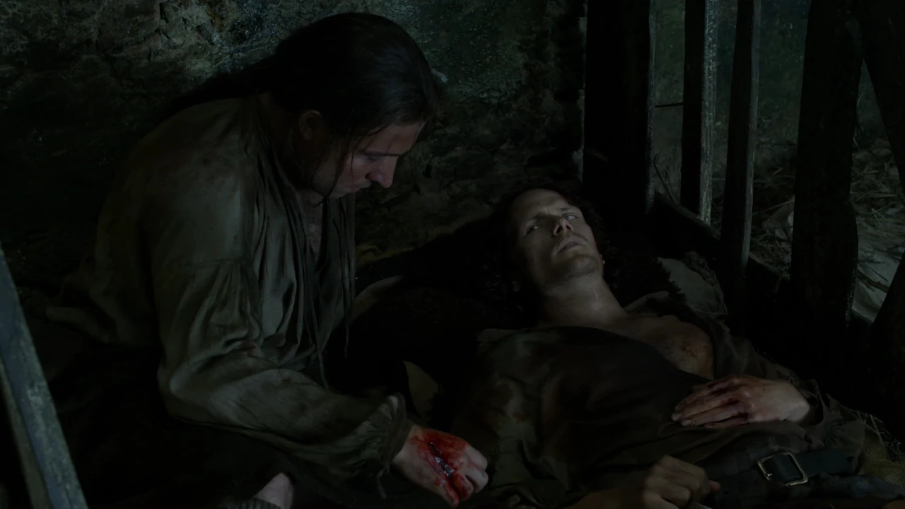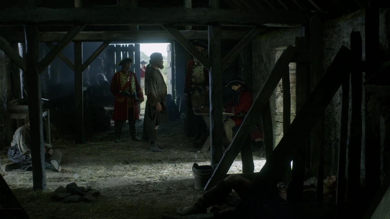 Cuando Jamie recupera la consciencia tras la batalla de Culloden se encuentra en una granja junto a otros supervivientes de la contienda, 18 en total; entre ellos, reconoce a Ewan Cameron que está a su lado y le ofrece agua. La cabaña cuenta con una sola ventana sin vidrio desde la que pueden observar a los soldados ingleses.