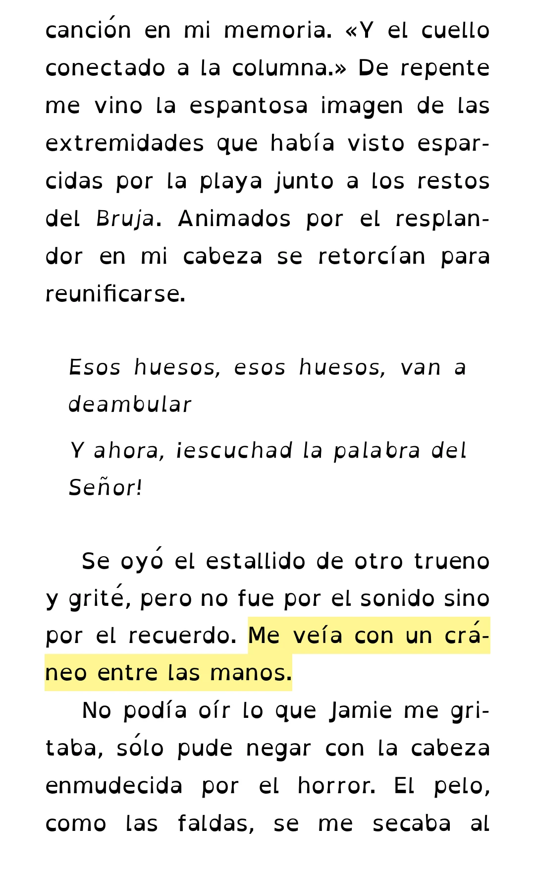 En la traducción al español del libro Viajera omitieron la frase de los ojos verdes. La oración solo dice “Me veía con un cráneo entre las manos” faltando el resto de la misma: “con ojos vacíos que alguna vez habían sido del verde del cielo huracanado” como fue publicado en su versión original[1]. Esta omisión ocurre incluso en la nueva traducción de Viajera.[2][3]