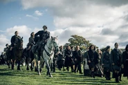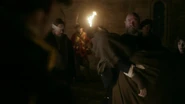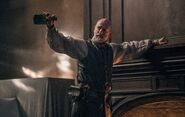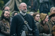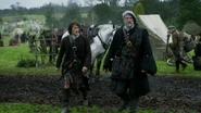 The next morning, when the English surround the church and are planning to burn it to the ground if the Scots inside do not come out, Dougal has the idea of using Claire as a bargaining chip. He parlays with the English and agrees to release their "hostage" in return for their release.