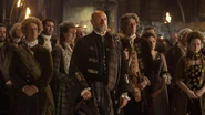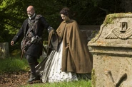 With the impending arrival of the Duke of Sandringham, Dougal returns to Leoch with Jamie and Claire. Not long after they arrive, Dougal gets word that his wife Maura has passed away of a fever at their estate of Beannachd.