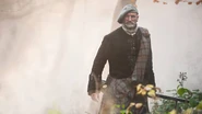 During the Gathering, Dougal is the first to offer his fealty and swear his oath to Clan MacKenzie. Later that night, after the rowdy men are well into their cups, a group of them chase after Claire, but she crashes into Dougal who shoos them away. Also inebriated, Dougal kisses Claire as a penalty for him saving her, then he lets her go.